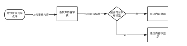 第一步:高铁管家提交相关点评内容,由百度大脑内容审核进行筛选;