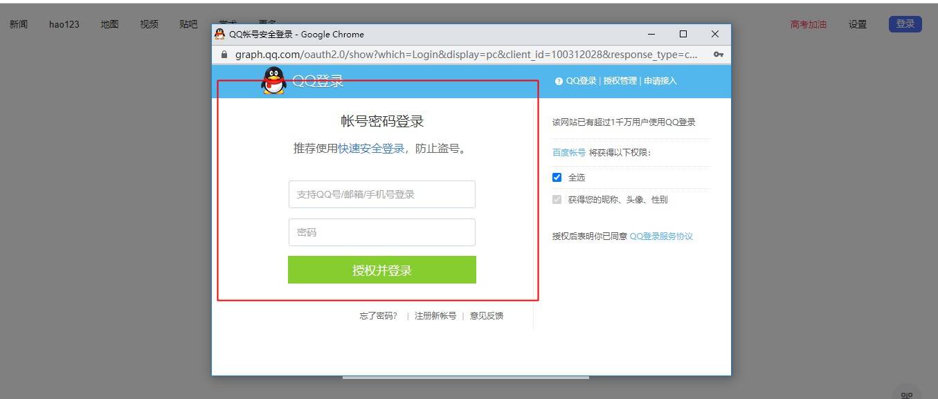 四、这样我们以后就可以用QQ邮箱登录百度了。