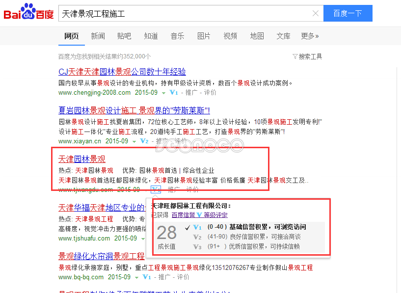当前,如果区分百度和竞价和非竞价的内容,只有2个字的区别,如图: