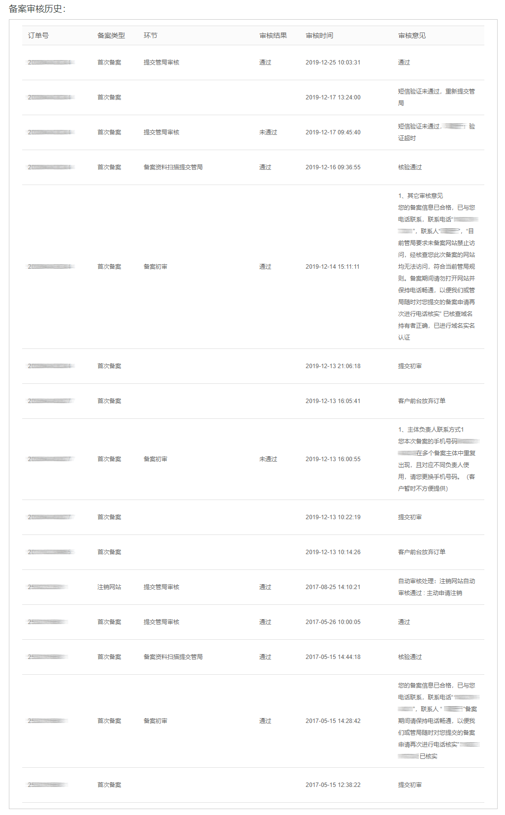 没想到重新备案后,注销的备案原来的备案审核记录也出来了,目测这应该是阿里云的历史记录吧! 如果这个历史记录是出于用户体验目的,这点其实挺合我意的(当下)。