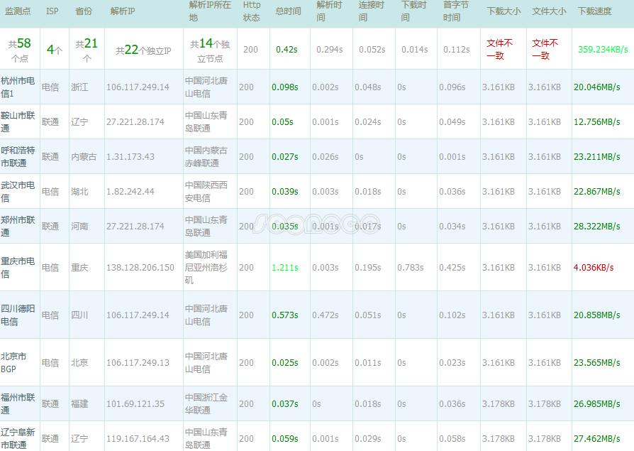 腾讯云CDN的情况下,把博客在17ce.com进行网站测速,观察了几天,大陆地区得到的平均值基本上在0.5-0.7秒左右,当然也存在个别国内节点值偏高,但出现这种情况的地区比无CDN的时候少得多。