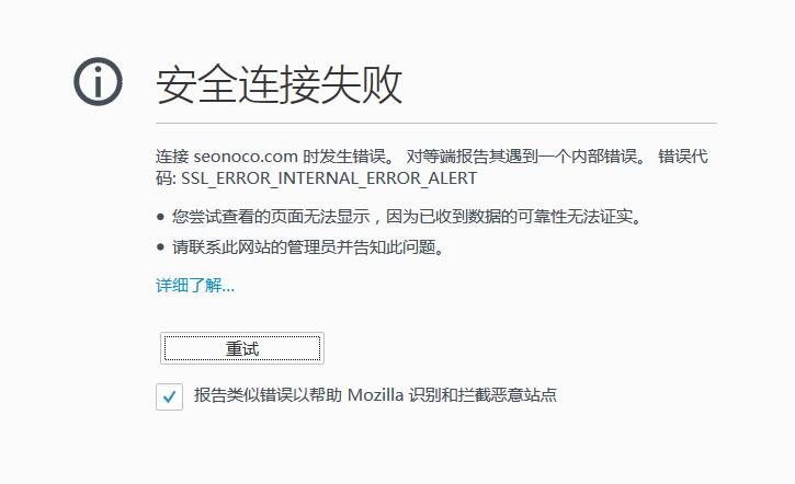 启用CloudFlare后在手机Firefox上测试,和电脑上测试,偶尔会出现SSL_ERROR_INTERNAL_ERROR_ALERT错误警告,但是点提示里的重试也能正常访问网站。