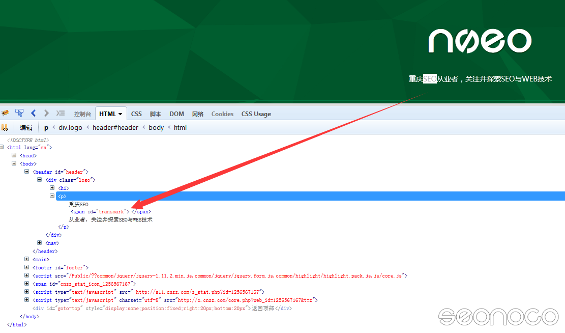 2.再用鼠标选中其中一段文字,看看节点的变化,果然,多了<span id="transmark></span>这么一个玩意。