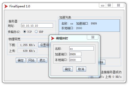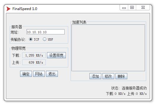 1. 运行 FinalSpeed 客户端 , 填写服务器地址 10.10.10.10 .